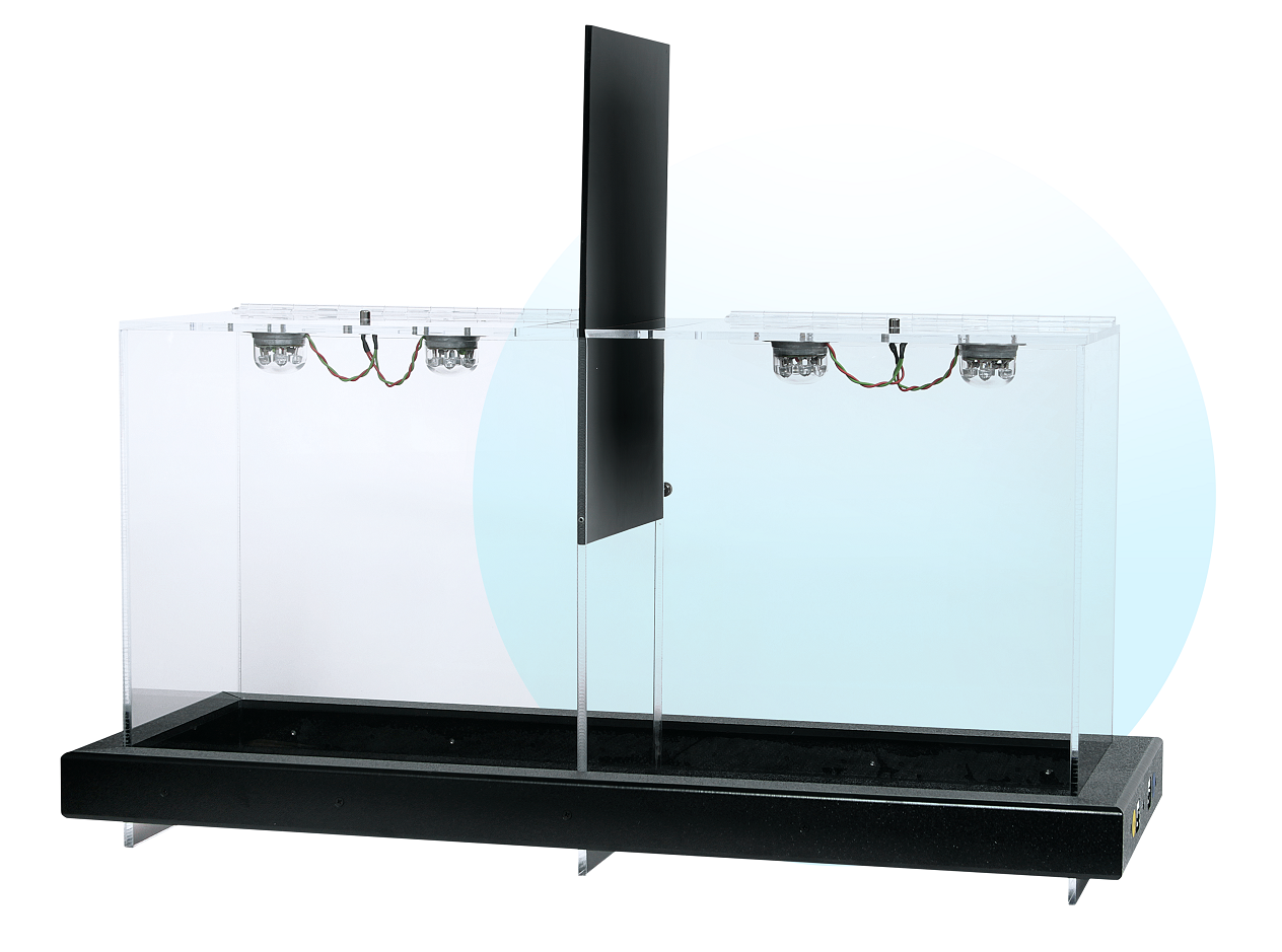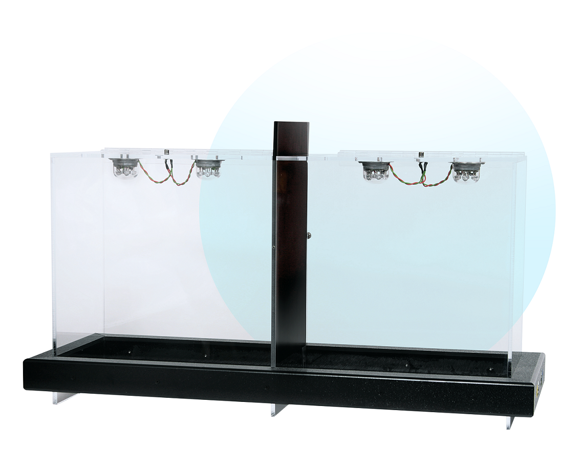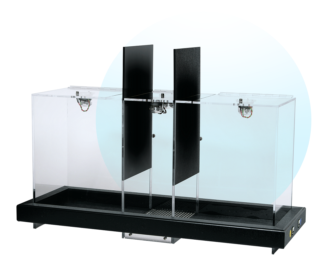 Designed for flexibility, you can purchase either a three-compartment or two-compartment enclosure with clear walls, removable floors, and no heat LED lights. Ensure thorough data capture by recording movement with a 4 x16 photobeam array, and speed up your testing capabilities by running up to 16 test stations from a single computer.