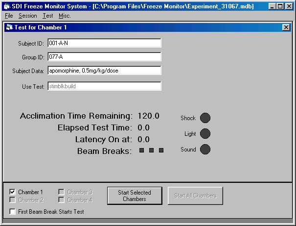 Freeze Monitor Software The Freeze Monitor software gives you more flexibility than ever. Define your complete study in advance in a single file by pre-assigning specific animals to specific test stations for each test session and assign a predefined test definition to each test session. The software will automatically record your session data and store it in the Study’s file keeping all data together. When you are ready, you’ll be able to display your data right on your computer monitor or choose to export it with one click to Microsoft® Excel or to a delimited file type(TAB, CSV, etc.).