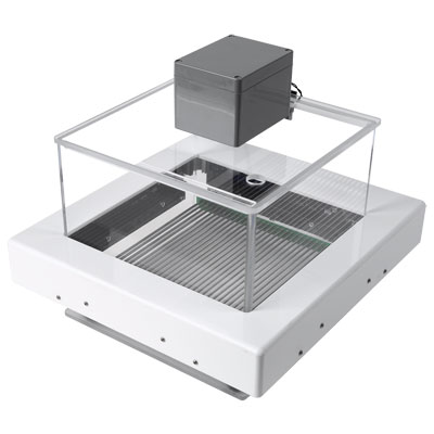 - Acrylic test enclosure with integrated shocker, cue light and Sonalert acoustic stimulus unit, includes excreta pan