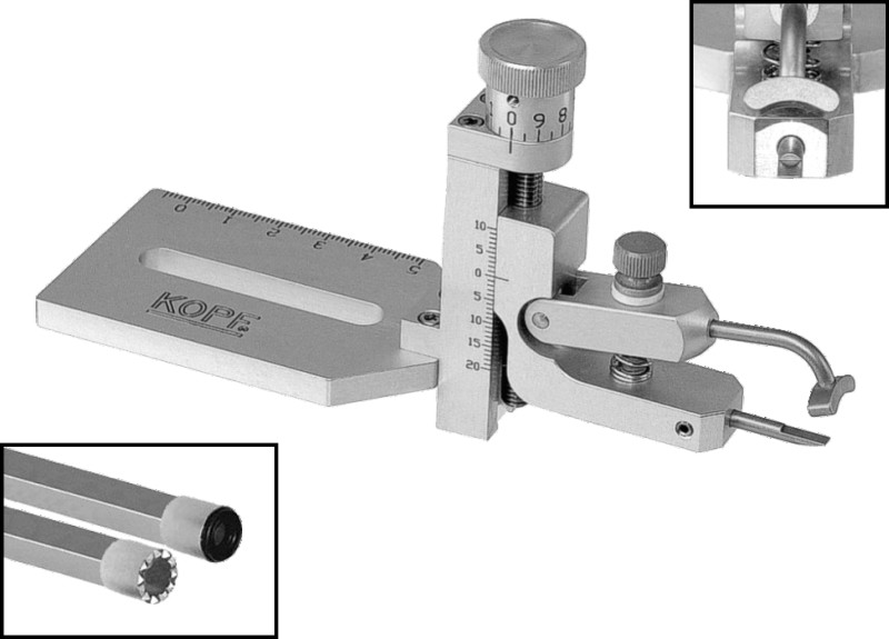 Dorsal/Ventral adjustment dial – Calibrated in 100 micron increments, 1 mm per revolution.