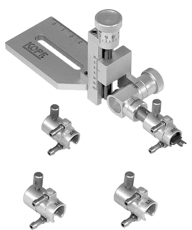 Dorsal/Ventral adjustment dial – Calibrated in 100 micron increments, 1 mm per revolution.